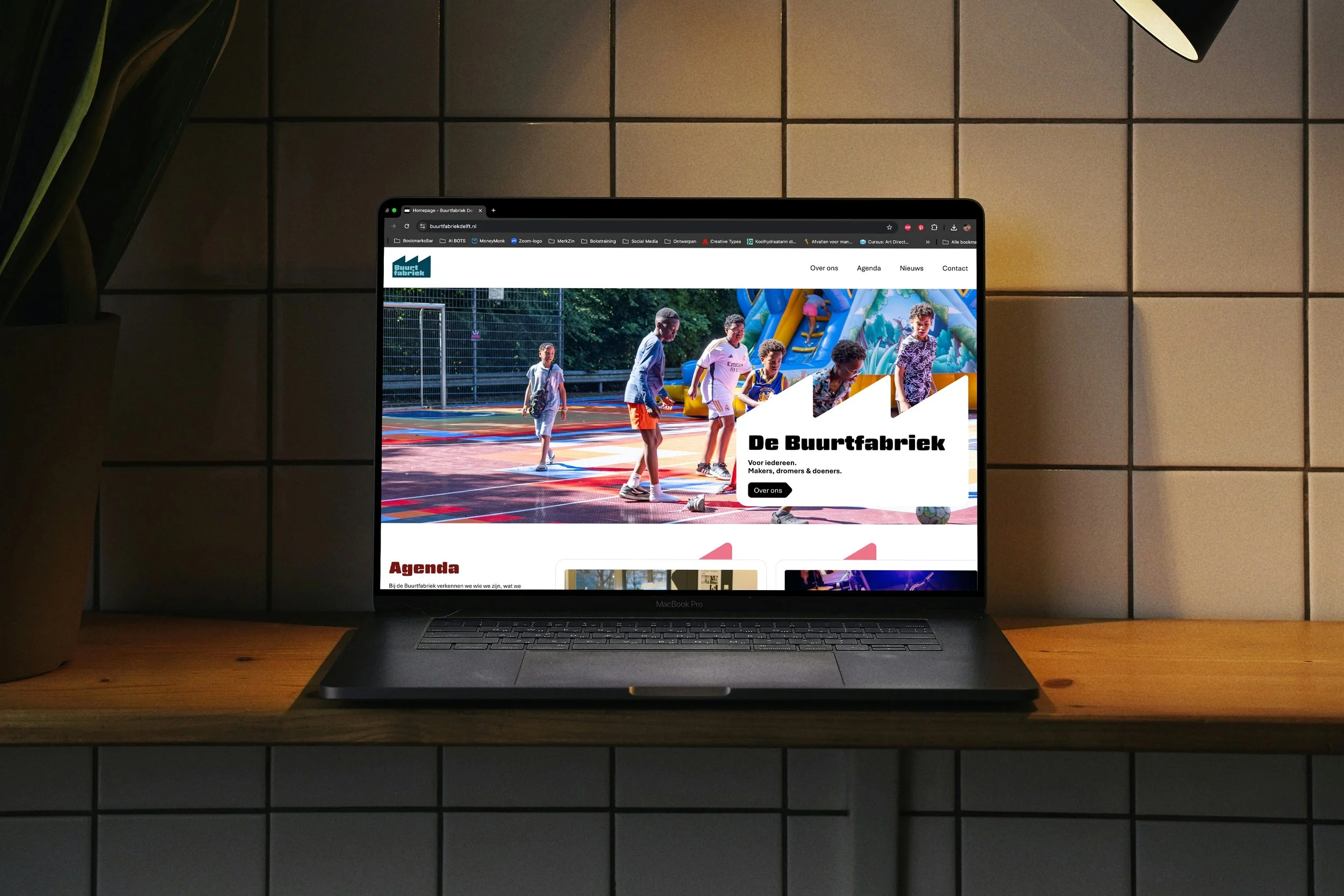 De werk omgeving met vijf partners en de meerdere doelgroepen die de buurtfabriek bedient dwong me om neutraal en lekker bold om te gaan met zowel de fysieke omgeving van de Buurtfabriek als de online omgeving.